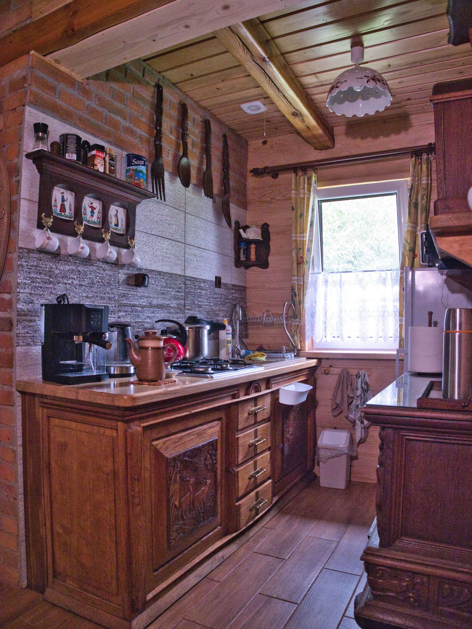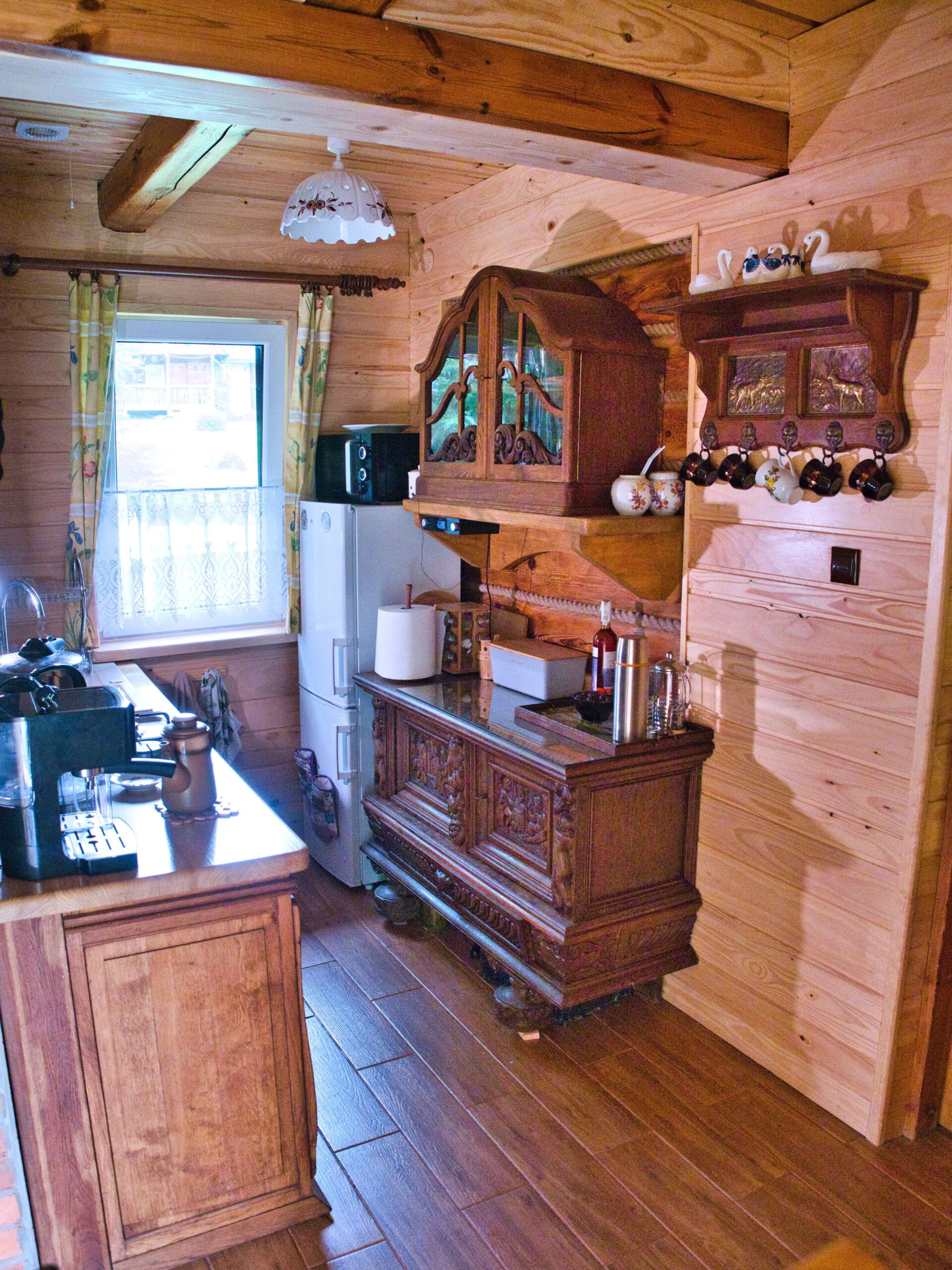 - Kuchnia (kuchenka, lodówka z zamrażalnikiem, ekspres do kawy, mikrofalówka)